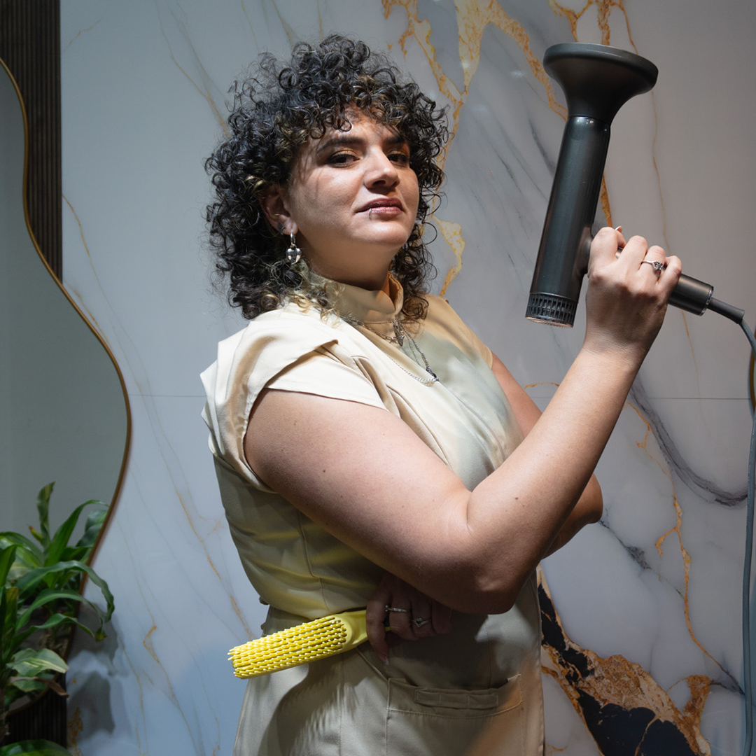 Con más de 20 años de experiencia en peluquería, Oscary Roldán es una venezolana apasionada por los rulos. Estudió Relaciones Públicas, carrera que fusiona con el estilismo, pero su verdadera vocación la encontró en la peluquería, ya que desde pequeña fue parte de su vida, trabajó con estilistas reconocidos en su país y para la marca de maquillaje MAC. Su hija, Miranda, con rulos hermosos, inspiró su enfoque en el cabello natural afro-rizado-ondulado.